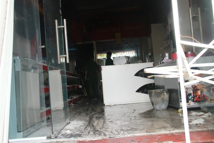 Khi xảy ra hỏa hoạn, một chiếc xe cần cẩu đi ngang qua giật cánh cửa sắt nhưng bên trong còn một lớp kính nữa