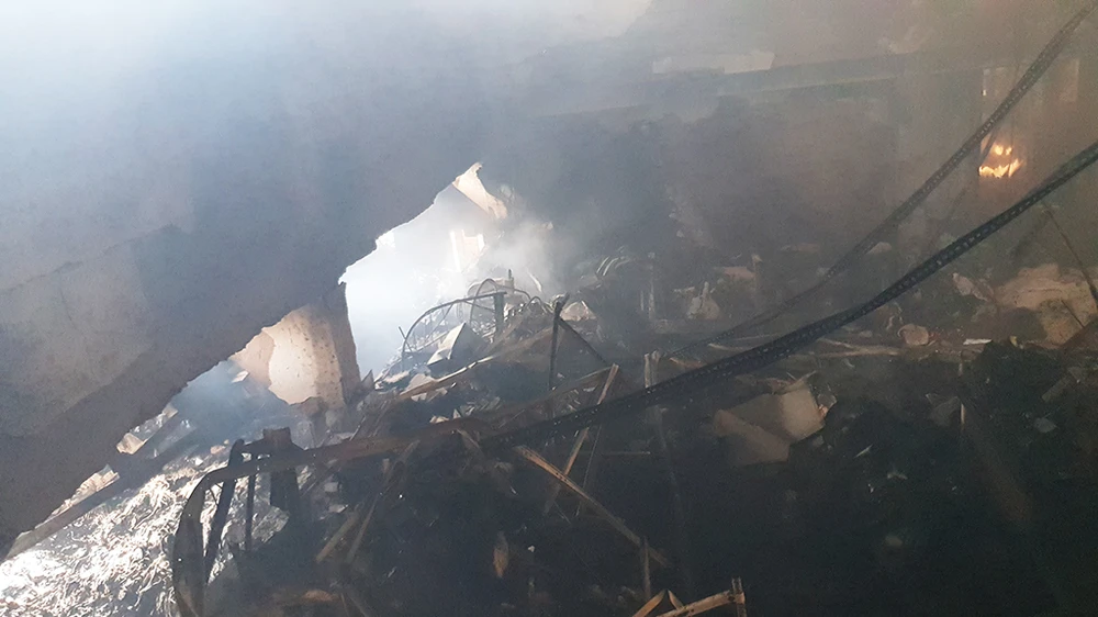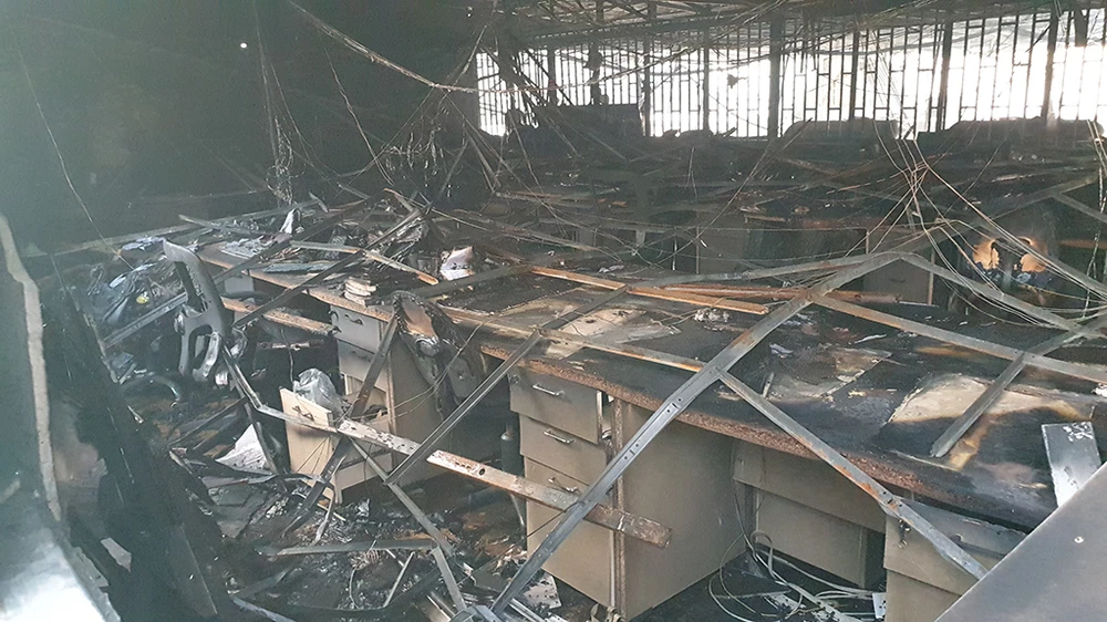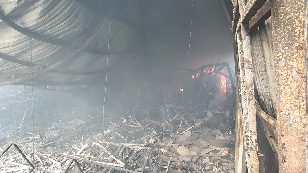 Khu vực làm việc của nhân viên công ty nhựa bị lửa thiêu rụi.