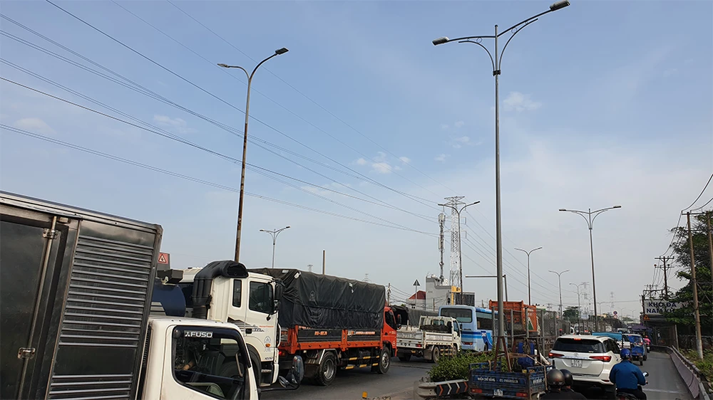 Ảnh hưởng từ vụ cháy, giao thông trên quốc lộ 1 đến sáng 27 -1 vẫn còn ùn ứ.