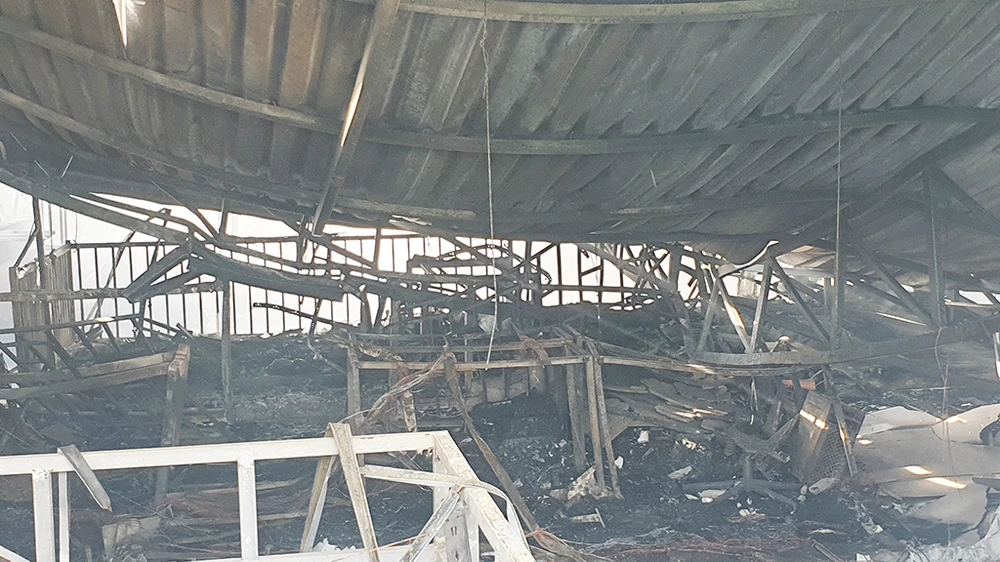Trong khi đó, mái tôn kho vải 350 m2 bị đổ sập. Ảnh: NT