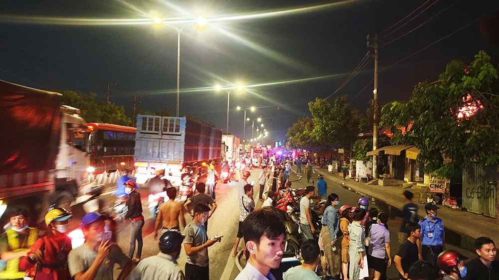 Ban đầu, kho vải HP bị lửa thiêu rụi hoàn toàn trên tổng diện tích 350 m2 và lan sáng Công ty TNHH ĐP ở số 58/3C Quốc lộ 1 (ấp Tiền Lân 1) cháy khoảng 1.000/1.500m2.