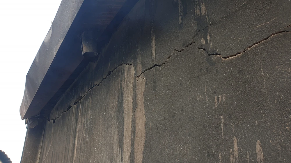 Tường ngôi nhà liền kề đám cháy bị nứt do sức nóng.