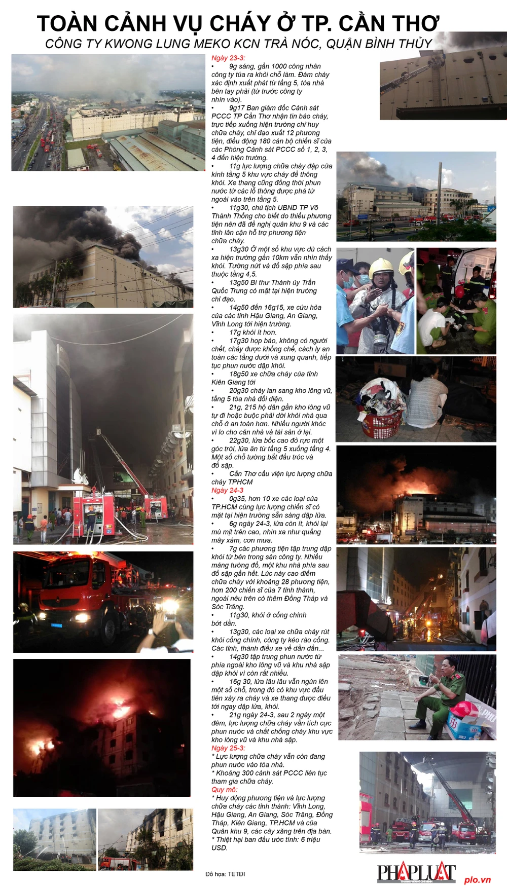 (PLO)- Gần 24 giờ, đám cháy ở Cần Thơ vẫn chưa được dập hẳn. Cần Thơ đã huy động hàng trăm người nhiều tỉnh, thành tham gia chữa cháy.