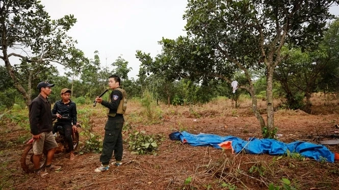 Nghi can Đặng Văn Hiến ra đầu thú. Ảnh: Dân Việt . 28-10: Bắt giữ nghi can Hà Văn Trường (31 tuổi, trú xã Đắk Nhau, huyện Bù Đăng, Bình Phước). Cùng ngày, lực lượng C45 đã đến điểm hẹn tại bìa rừng để tiếp nhận bị can đầu thú Đặng Văn Hiến. Sau khi làm thủ tục, bị can Hiến theo các cán bộ ra khỏi rừng và không bị còng tay. Bị can này được đưa về thẳng C45 phía Nam để lấy lời khai. Cùng liên quan trong vụ án còn có hai nghi phạm là Ninh Viết Vương, Ninh Viết Thọ vẫn đang lẩn trốn. |