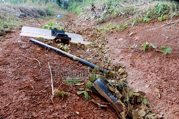 Rựa, khiên của công nhân Công ty Long Sơn bỏ lại. Ảnh: Vietnamnet