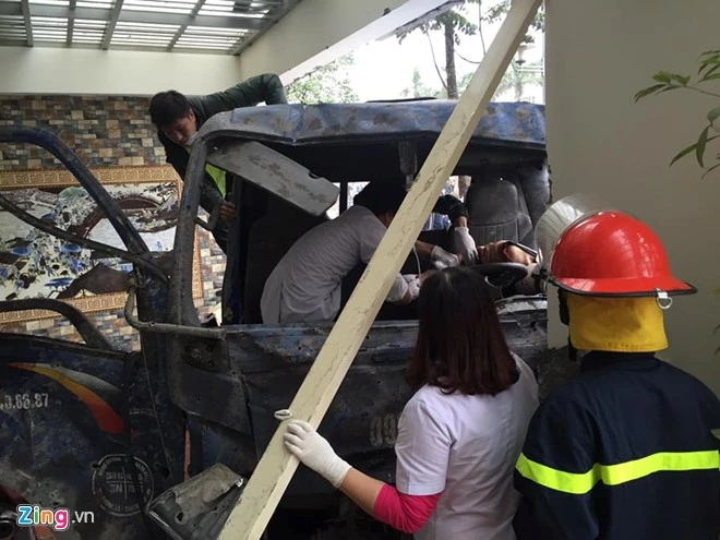 Tài xế bị mắc kẹt trong cabin. Ảnh: Zing.vn