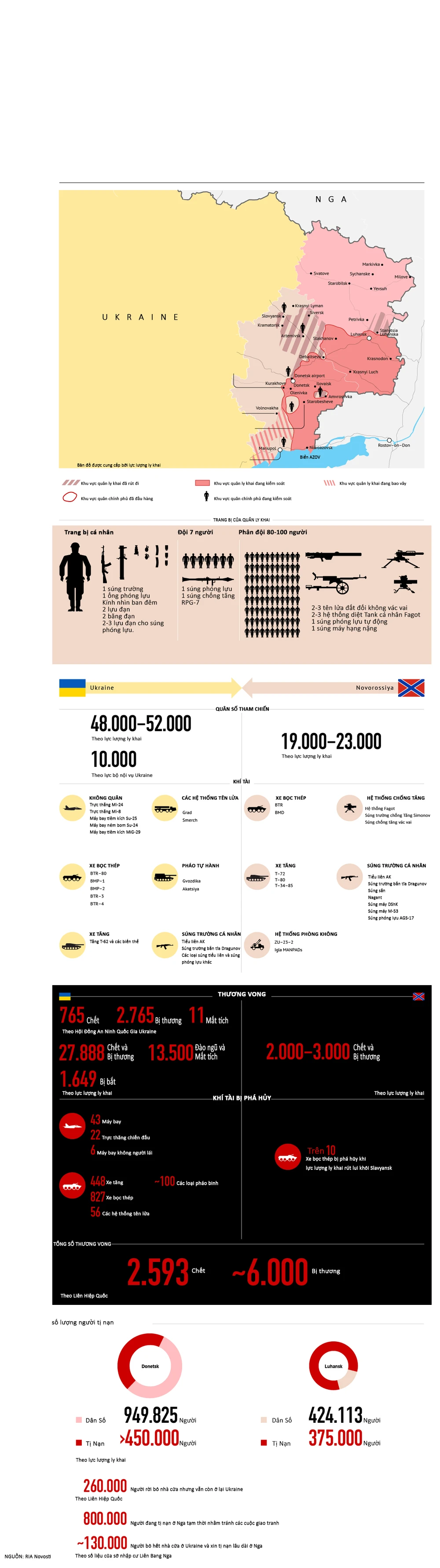 (PLO) - Toàn cảnh xung đột ở Đông Ukraine qua các con số cuộc xung đột đẫm máu ở miền Đông Ukraine đã kéo dài đến tháng thứ 6. Một lệnh ngừng bắn mong manh vừa được tuyên bố hôm 5-9 nhưng vẫn chưa có bất kỳ dấu hiệu nào của một nền hòa bình lâu dài. Sau đây là những con số thống kê “biết nói” về cuôc xung đột này.