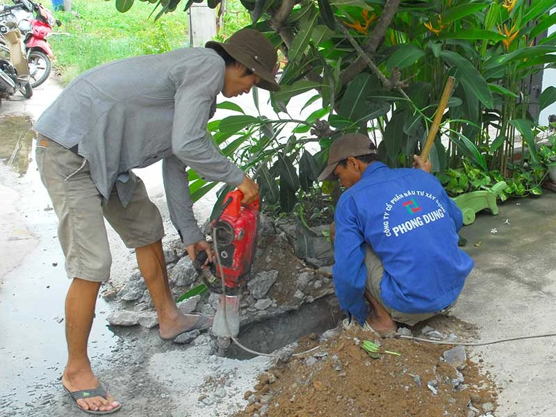 Thi công lắp đường ống nước sạch vào nhà dân. Ảnh: HTD