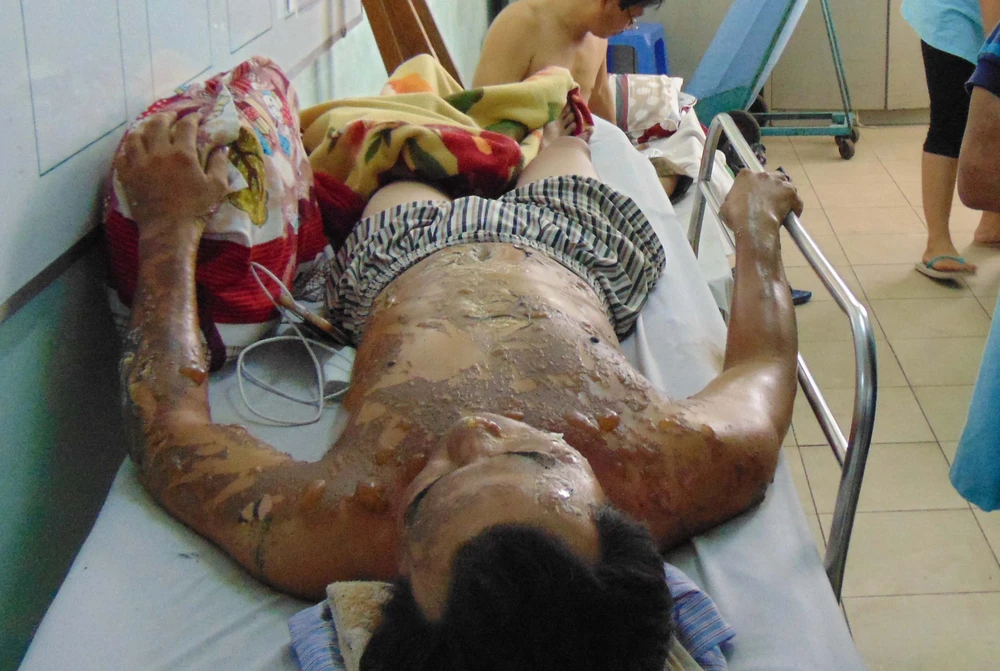 Toàn thân ông H. nổi đầy bóng nước. Ảnh: TRẦN NGỌC