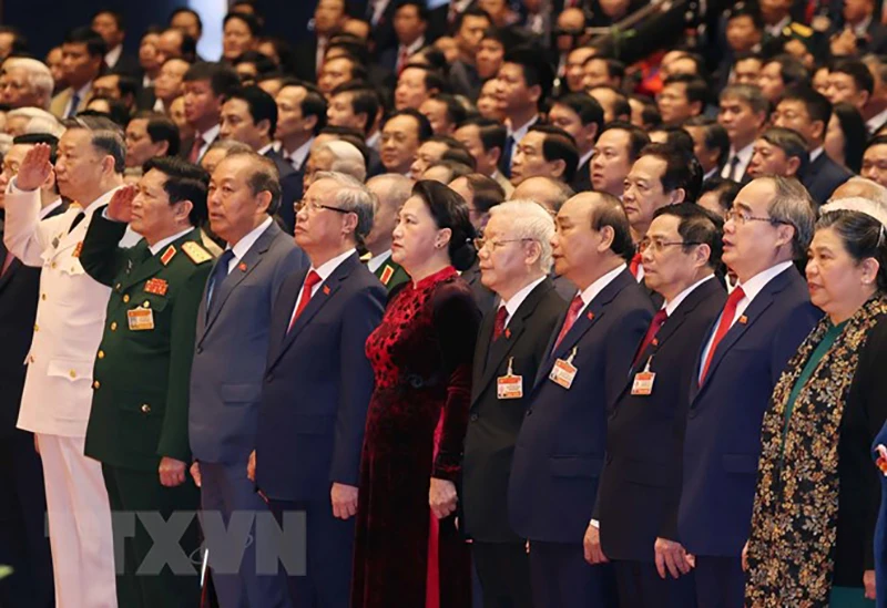 Tổng Bí thư, Chủ tịch nước Nguyễn Phú Trọng và Ủy viên Bộ Chính trị, Thủ tướng Chính phủ Nguyễn Xuân Phúc dự phiên khai mạc Đại hội. Ảnh: TTXVN