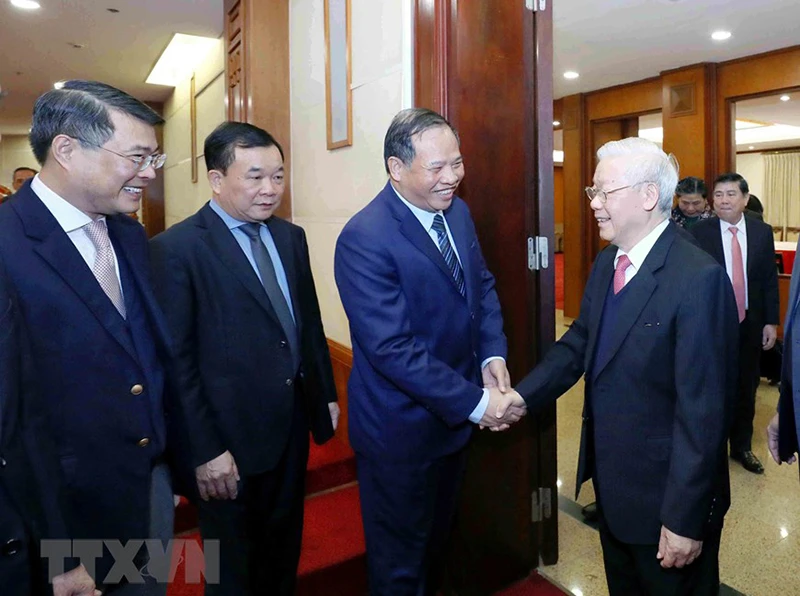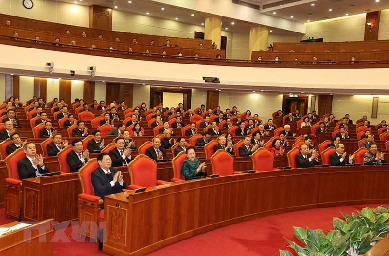 Tổng bí thư, Chủ tịch nước Nguyễn Phú Trọng và các Ủy viên Trung ương dự Hội nghị. Ảnh: TTXVN