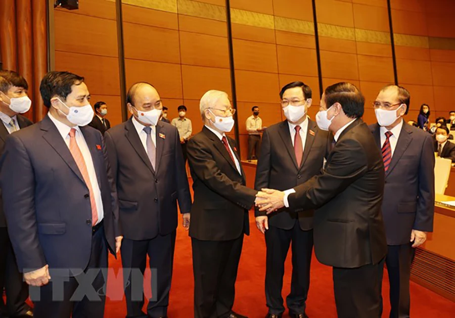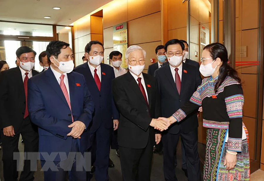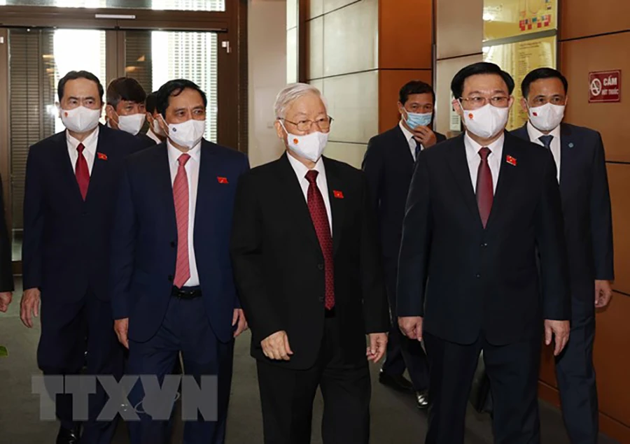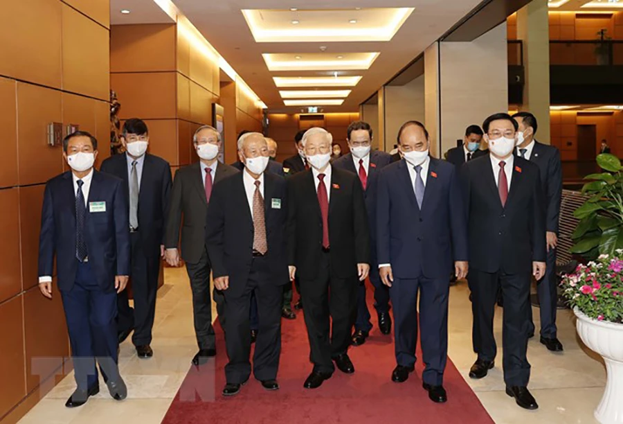 Tổng Bí thư Nguyễn Phú Trọng cùng các lãnh đạo Đảng và Nhà nước dự Lễ khai mạc Kỳ họp thứ nhất, Quốc hội khóa XV. Ảnh: TTXVN