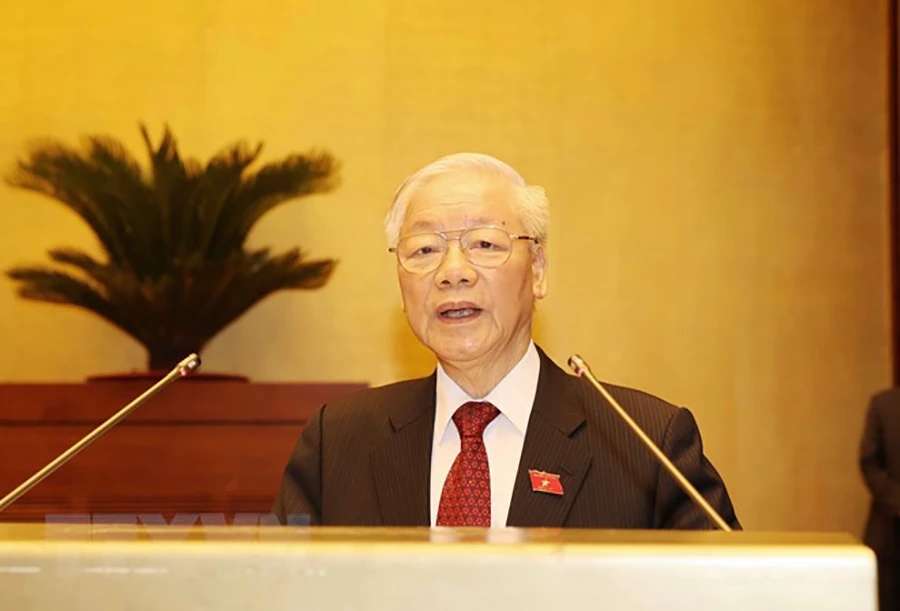 Tổng Bí thư Nguyễn Phú Trọng phát biểu tại phiên khai mạc Kỳ họp thứ nhất, Quốc hội khóa XV. Ảnh: TTXVN