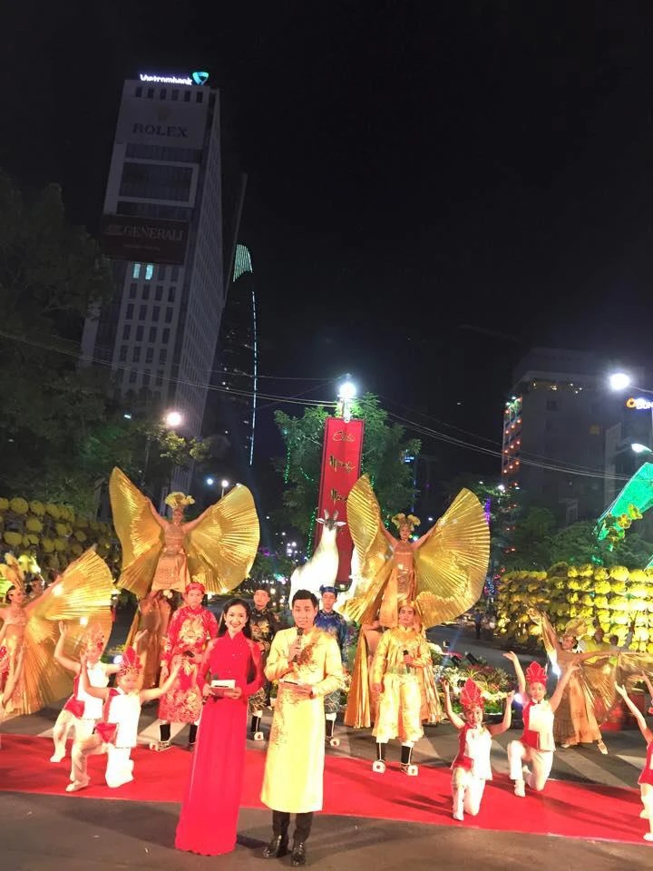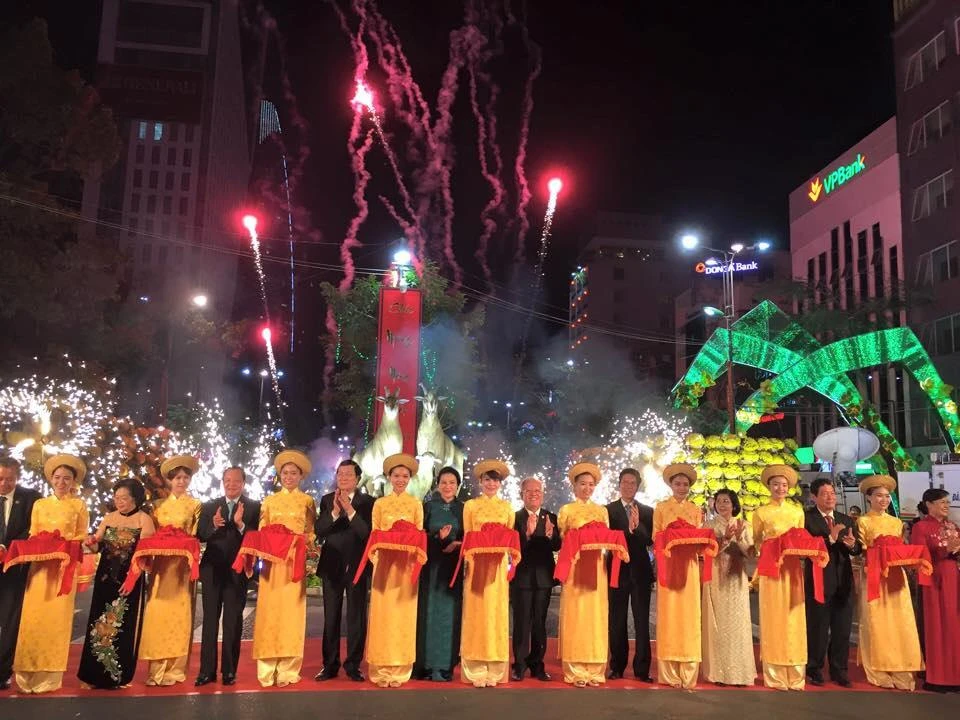 Quang cảnh buổi lễ khai mạc và khu vực bên trong đường hoa Hàm Nghi. Ảnh: HƯƠNG TRƯƠNG.