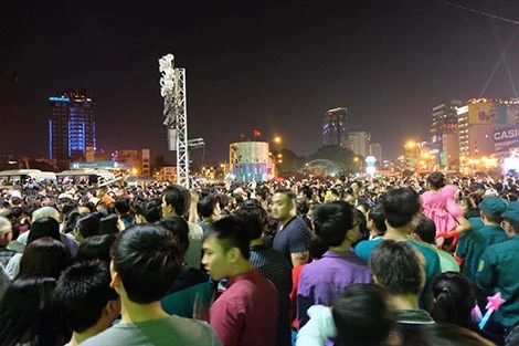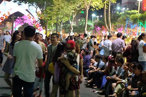 Hàng ngàn người dân TP đã đổ về đường hoa Hàm Nghi dự lễ khai mạc khiến cho khu vực này gần như bị tê liệt ngay sau khi kết thúc buổi lễ. “Biển người” đi du xuân phải toát mồ hôi nhích từng bước một để vào khu trung tâm đường hoa. Nhiều người không chen nổi đã phải tìm đường “thoát” ra ngoài và cho biết sẽ trở lại đường hoa trong ngày mai.