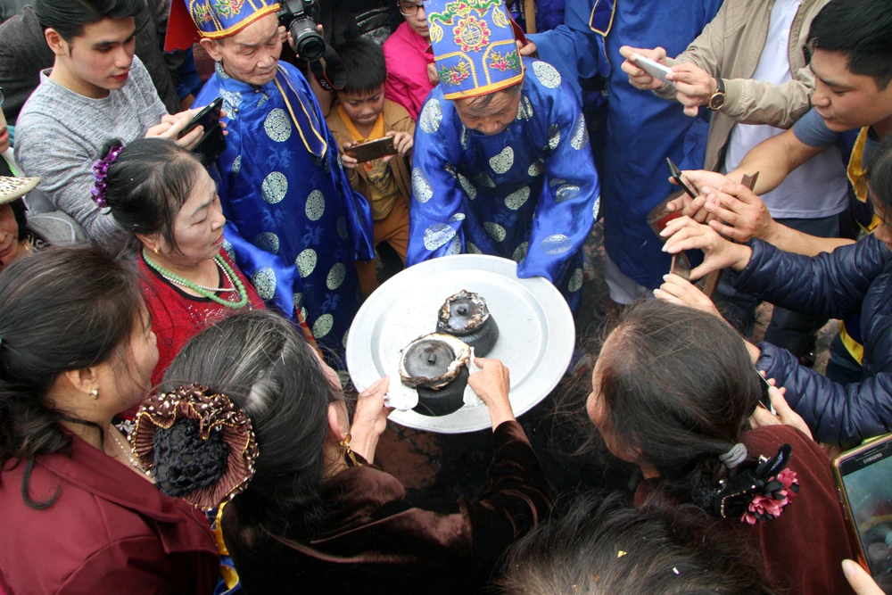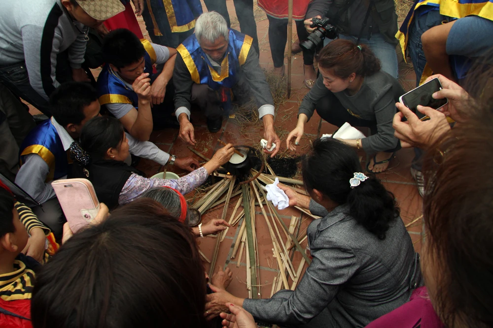 Sau khi cơm được tìm thấy, các cụ sẽ mang vào trong.