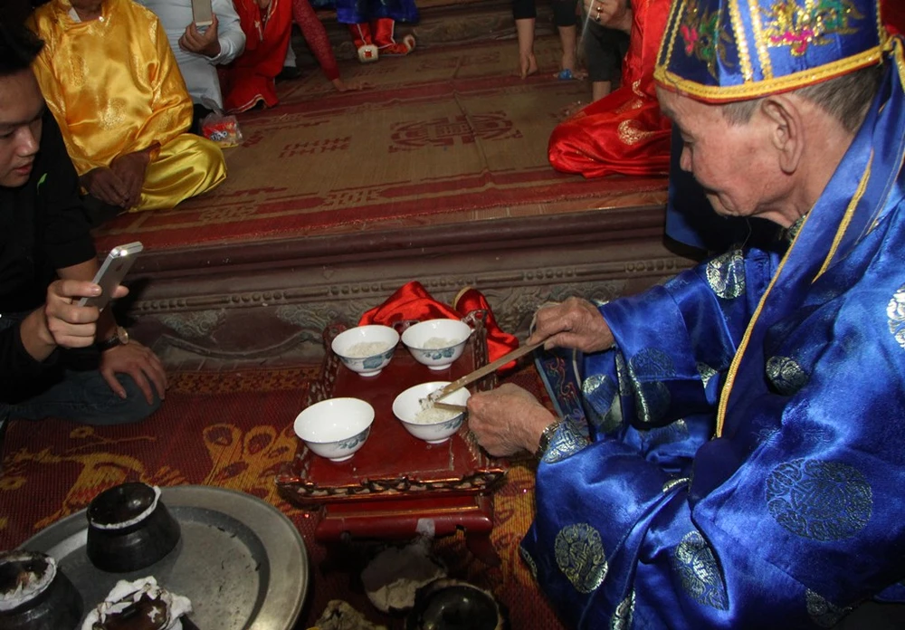 Cơm xới ra bát cúng thần linh sau đó ban giám khảo mới được nếm và chấm giải.