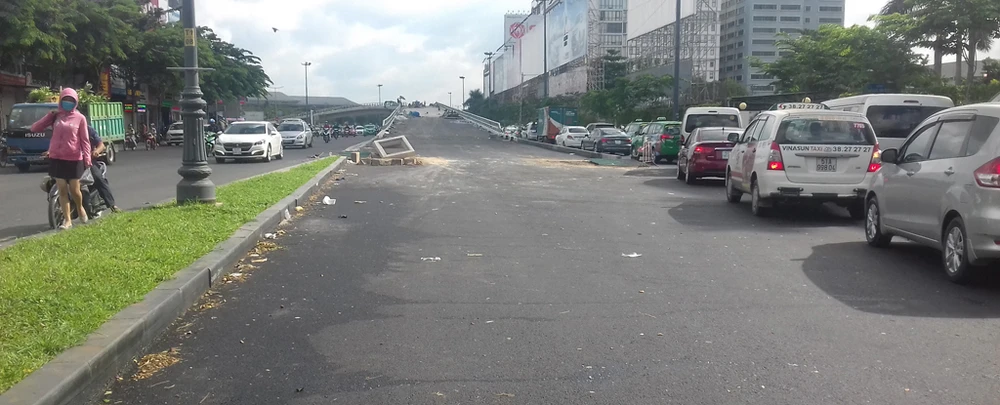 Đường Trường Sơn lên cầu vượt để đi ga quốc tế, ga quốc nội ở sân bay Tân Sơn Nhất đã xong và sẽ thông xe vào ngày 3-7.