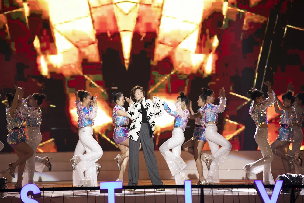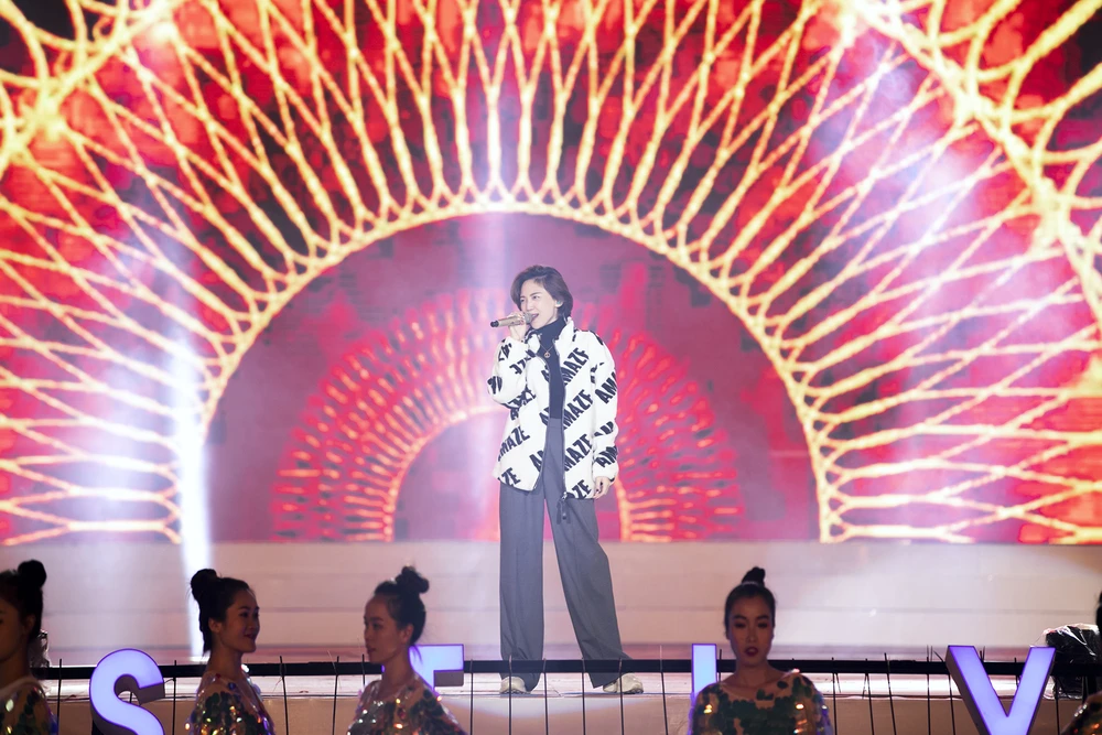 Đảm nhận vai trò ca sĩ khách mời Tóc Tiên vẫn xuất hiện cực ngầu trên sân khấu với thời trang mùa đông ấm áp. Mặc dù dưới cái lạnh thấu xương của tiết trời Đà Lạt nhưng cô vẫn hết mình “làm nóng” cả khu vực tổng duyệt với giọng hát của mình.