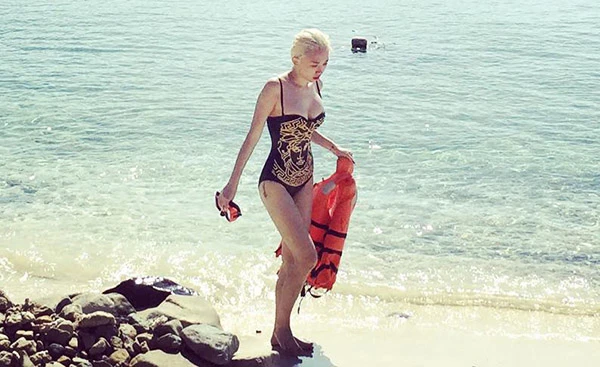Trên trang cá nhân, nữ ca sĩ khoe một số tấm ảnh gợi cảm được một người bạn ghi lại. Cô diện áo tắm của thương hiệu Versace có giá khoảng 8,3 triệu đồng.