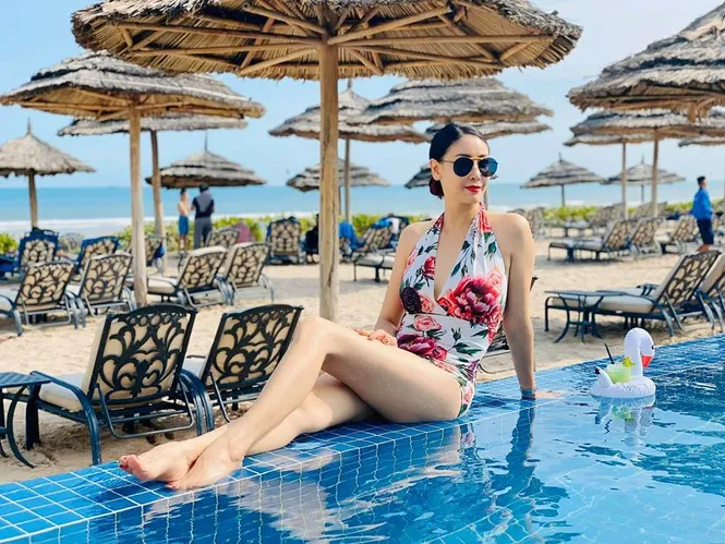 Hoa hậu Việt Nam 1992 Hà Kiều Anh khoe dáng bikini ở tuổi trung niên.