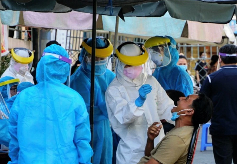 Lực lượng y tế lấy mẫu xét nghiệm cho người dân ở phường Tân An, quận Ninh Kiều, TP Cần Thơ. Ảnh: TL