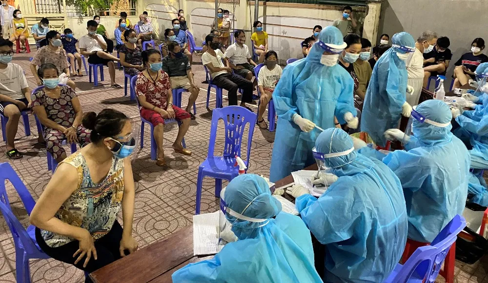 Chiều 17-6, sau khi kết quả xét nghiệm bé 5 tuổi ở phường Hưng Phúc (TP Vinh) dương tính, lực lượng y tế đã lấy mẫu xét nghiệm cho người dân Hưng Phúc.