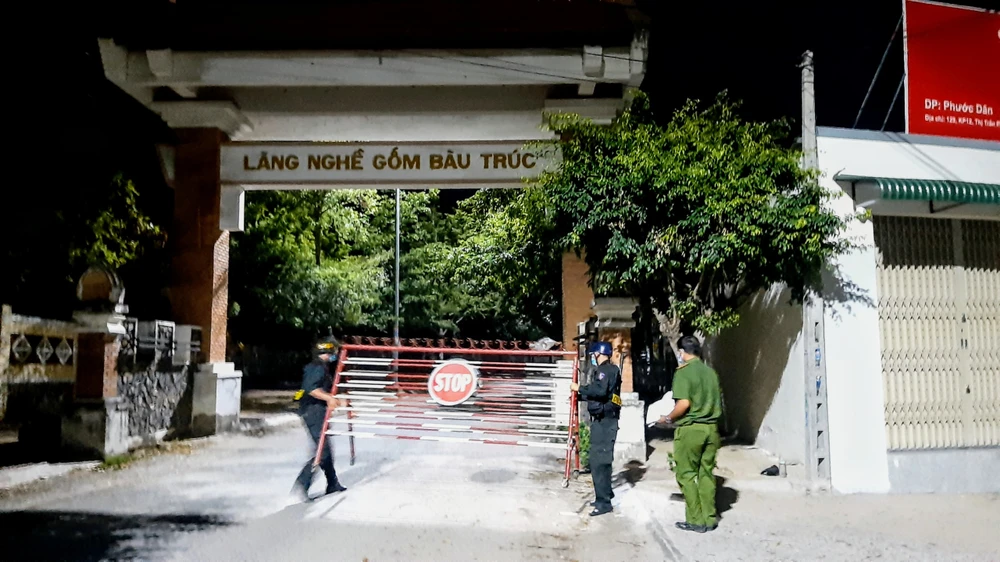 Lực lượng chức năng đang lập chốt tại làng gốm Bàu Trúc tối 20-7. Ảnh: Núi Xanh