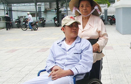Tuấn Anh cùng mẹ sau phiên tòa xử người gây tai nạn khiến anh bị tàn phế suốt đời. Ảnh: D.HẰNG