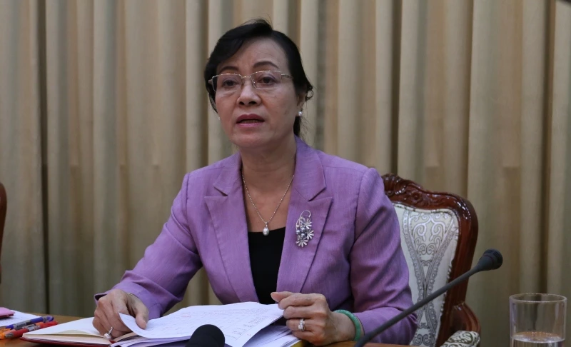 Chủ tịch Ủy ban Bầu cử TP.HCM Nguyễn Thị Quyết Tâm trả lời các cơ quan báo chí về việc chuẩn bị cho ngày bầu cử. Ảnh: TÁ LÂM