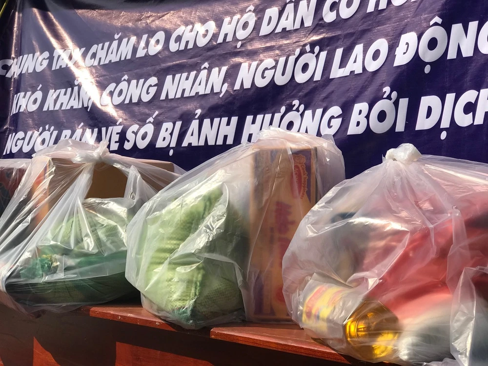 Mùa dịch, mỗi phần quà với phần lương thực, dầu ăn, nước tương cũng đủ để người nghèo trang trải thêm. Ảnh: THANH TUYỀN