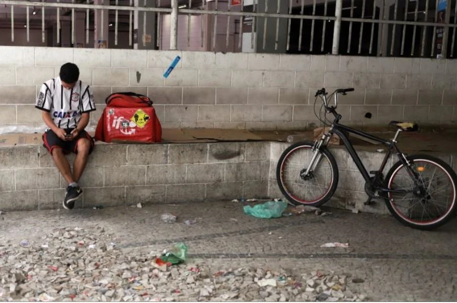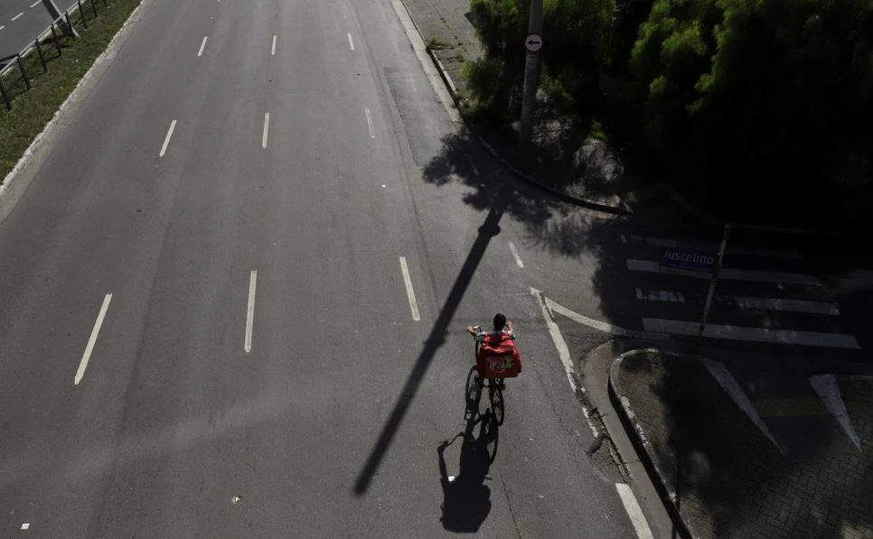 Tại Brazil, những ngày này đường phố Sao Paulo (TP lớn nhất nước) gần như vắng lặng, sau khi chính phủ yêu cầu 12 triệu dân ở trong nhà. Tuy nhiên anh Erik Thiago vẫn đều đặn ra khỏi nhà trong một khu ổ chuột ở ngoại ô phía nam và bám mặt đường mỗi ngày với công việc giao hàng để kiếm tiền nuôi gia đình.
