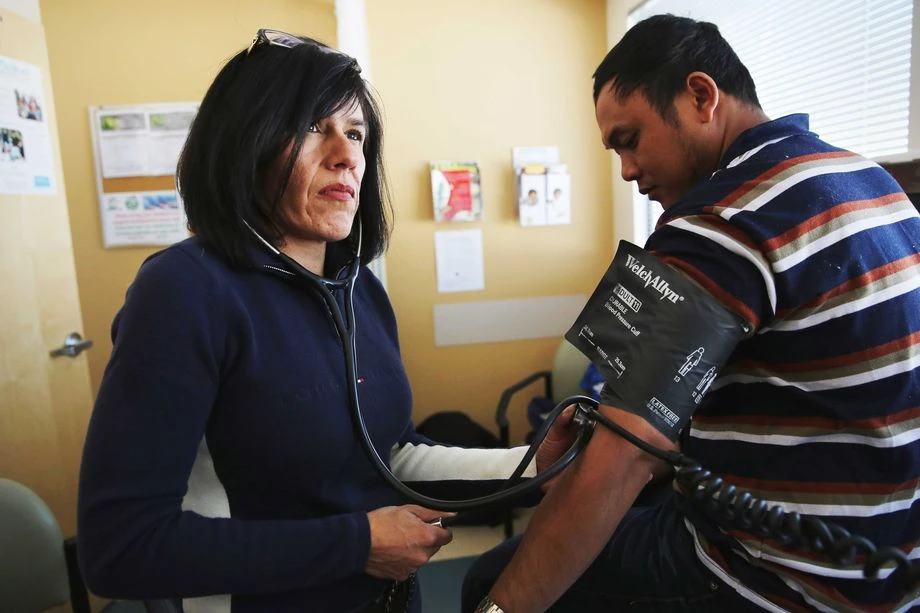 Bác sĩ đo huyết áp cho một người tị nạn từ Myammar tại TP Fort Collins, bang Colorado (Mỹ). Ảnh: GETTY IMAGES