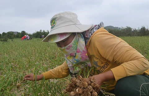 Nông dân lao đao vì tỏi mất mùa. Ảnh: HỮU DANH