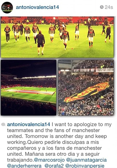 Hôm qua, Valencia đã chính thức gửi lời xin lỗi tới những ai yêu mến M.U. Valencia viết trên Instagram, “Tôi muốn xin lỗi các đồng đội và người hâm mộ Manchester United”.