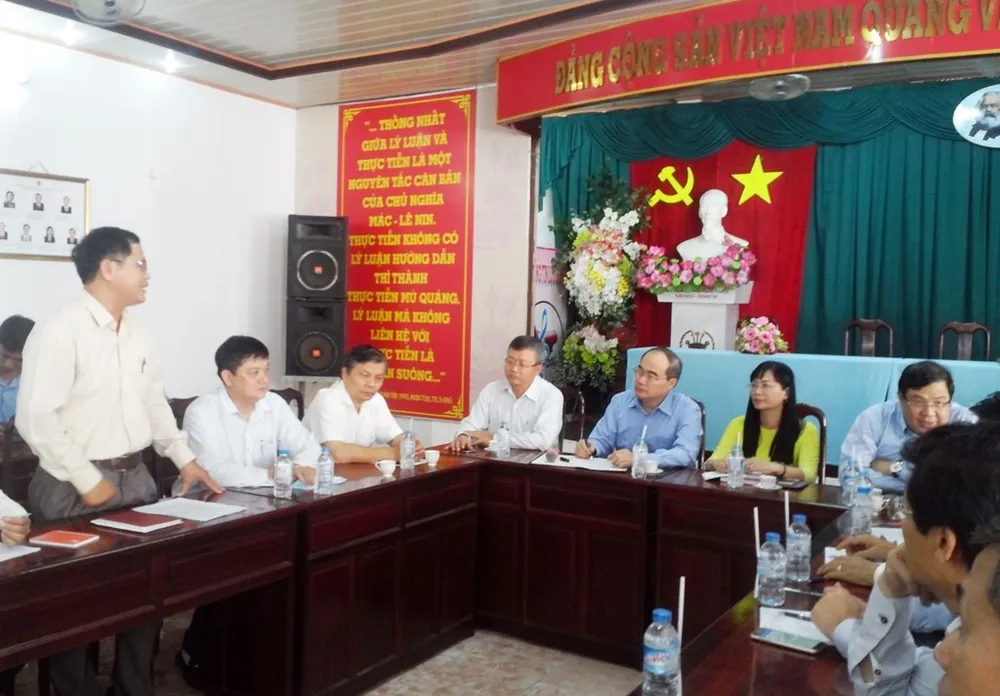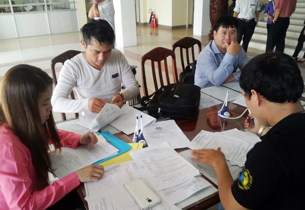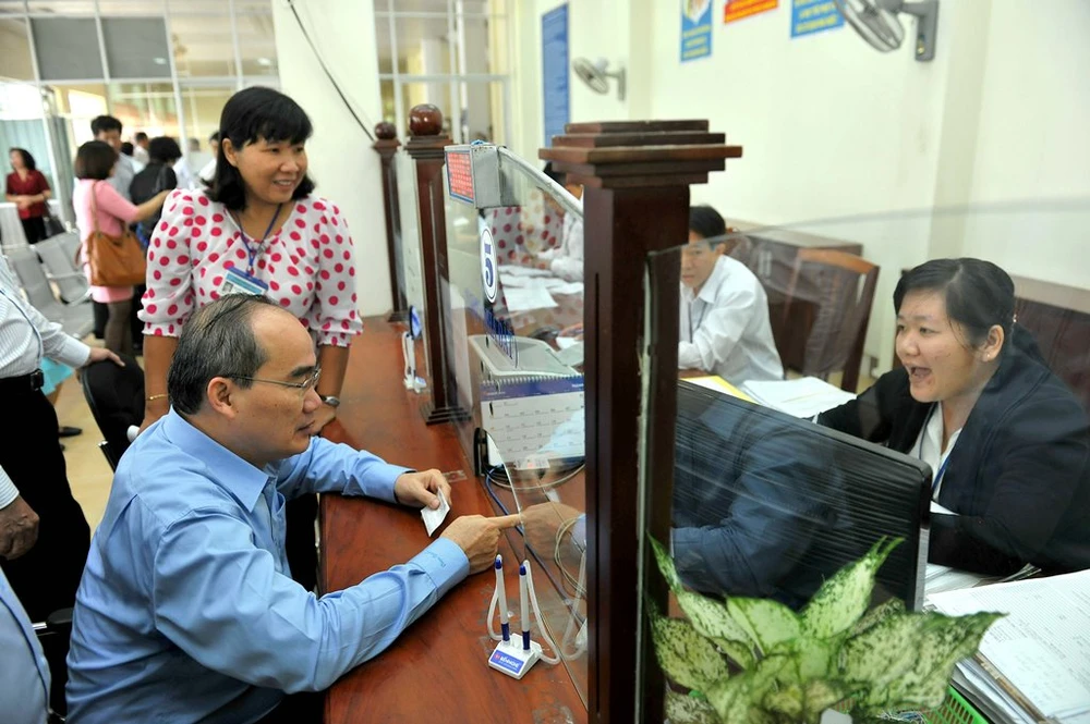 Cùng với anh Niệm, những người dân khác như chị Nguyễn Thị Cẩm Tú (áo đỏ), anh Nguyễn Văn Tân (thứ hai từ trái qua) đều nói rằng họ không biết hôm nay ông Nhân sẽ khảo sát bộ phận một cửa. Phóng viên quan sát và nhận thấy khi ông Nhân tiến vào, họ vẫn chăm chú hoàn thành các thủ tục.