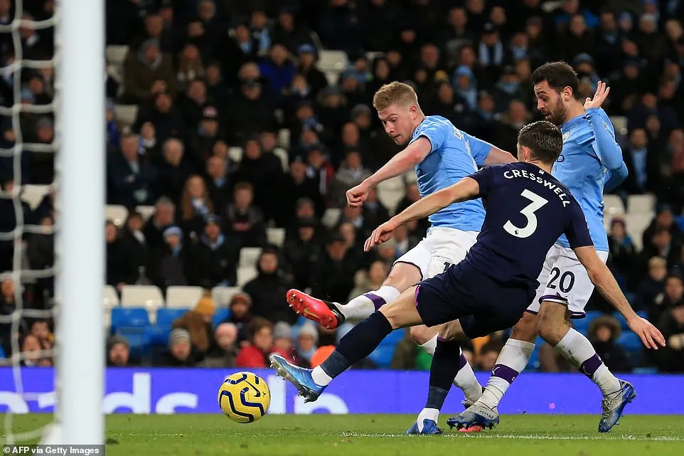 Kevin De Bruyne dứt điểm ghi bàn ấn định chiến thắng 2-0 cho Man City.