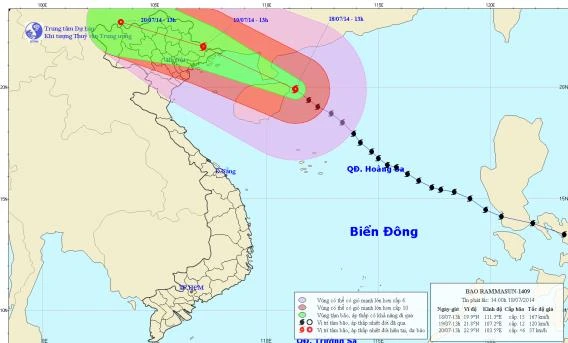 Thông tin trên được Trung tâm dự báo khí tượng Thủy văn Trung ương (KTTVTW) cung cấp trong bản tin báo bão khẩn cấp phát lúc 14 giờ 30 phút hôm nay 18-7.
