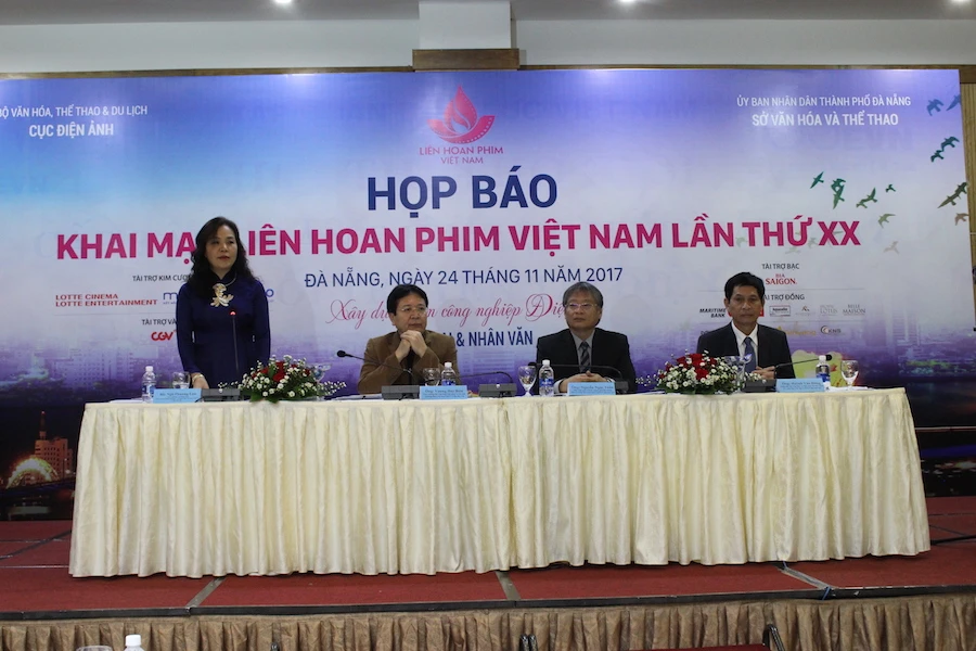 Bà Ngô Phương Lan (Cục trưởng Cục Điện ảnh, trưởng BTC) giới thiệu về Liên hoan phim Việt Nam lần thứ 20. Ảnh TÂM AN
