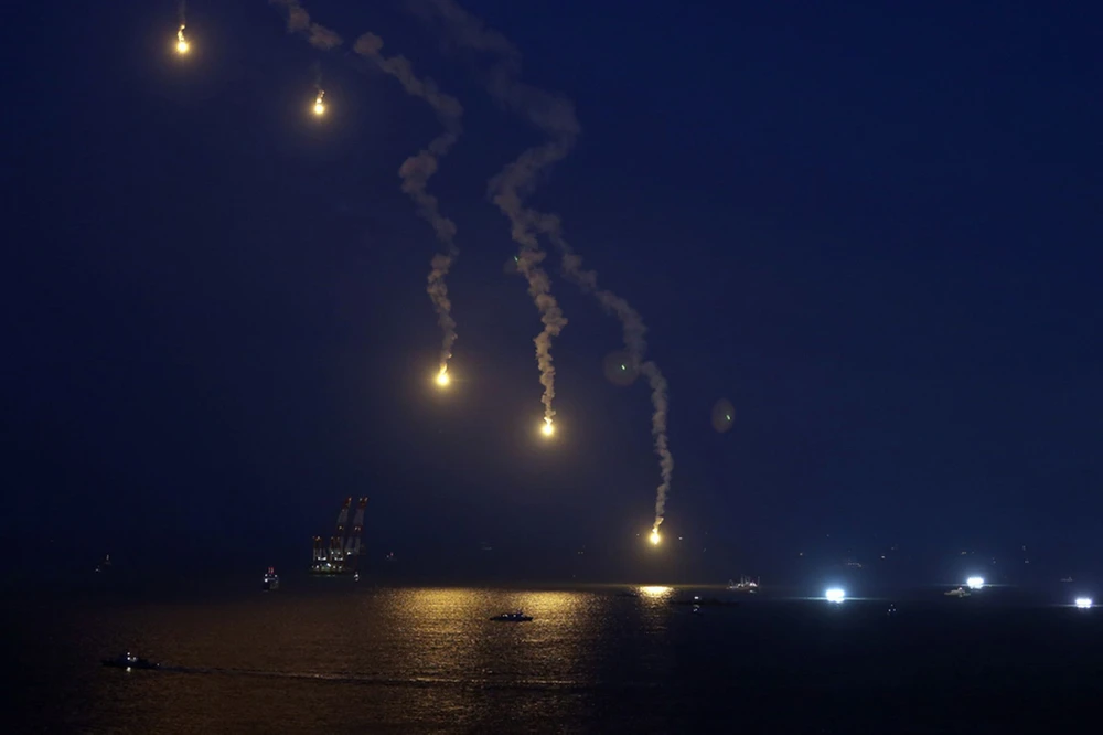 Lực lượng tìm kiếm cứu nạn hoạt động suốt đêm với pháo sáng. Ảnh: Mirror