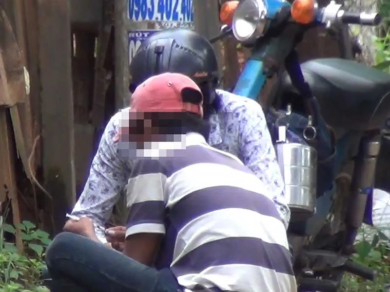 Người nghiện tiêm chích ma túy sau khu vực bến xe An Sương. Ảnh: NGUYỄN TÂN