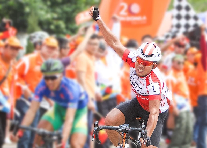 Lê Văn Duẩn rút thắng tại đích đến. Ảnh: PHẠM HUY