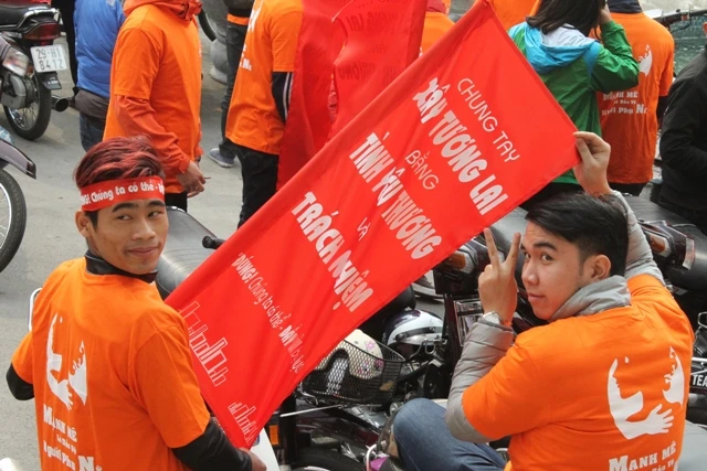 Bạn trẻ hưởng ứng chiến dịch đẩy lùi bạo lực gia đình. Ảnh: VIẾT LONG