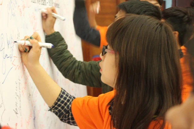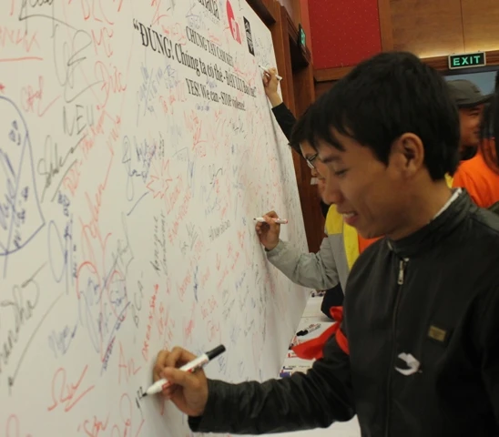 Hàng ngàn chữ ký của bạn trẻ cam kết đẩy lùi bạo lực gia đình. Ảnh: VIẾT LONG