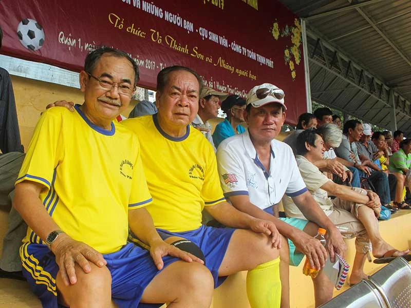 NSƯT Việt Anh cùng cựu danh thủ Võ Thành Sơn trong những trận cầu từ thiện hỗ trợ các cựu cầu thủ khó khăn. Ảnh: CT
