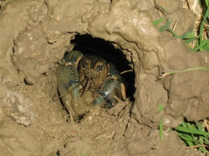 Tôm càng đỏ có thể đào hang sâu đến 2m, đe dọa các công trình thủy lợi, thủy sản, nông nghiệp...
