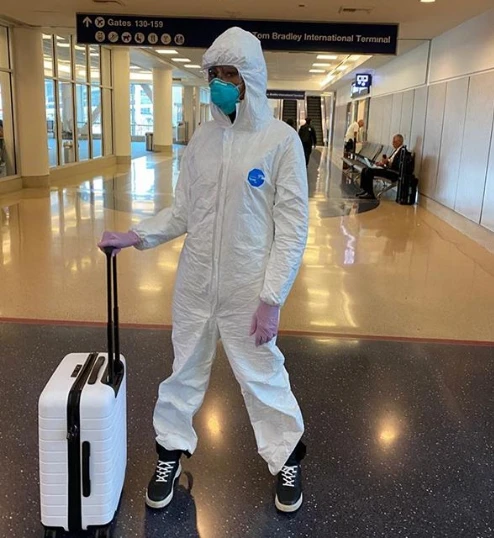 Naomi Campbell được biết là người rất kỹ càng và sợ lây nhiễm khi đi du lịch, thậm chí trước đây cô còn đăng một video cho thấy cô lau sạch sẽ mọi thứ quanh chỗ ngồi của mình. Vì vậy, sẽ không có gì đáng ngạc nhiên khi siêu mẫu 49 tuổi này trang bị kín bưng từ đầu đến chân để hạn chế lây nhiễm virus SARS-CoV-2.