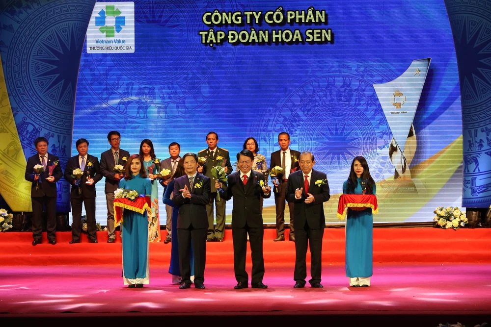 Phó Thủ tướng Thường trực Trương Hòa Bình và bộ trưởng Công Thương trao danh hiệu Thương hiệu Quốc gia cho ông Vũ Văn Thanh, Phó Tổng Giám đốc HSG.