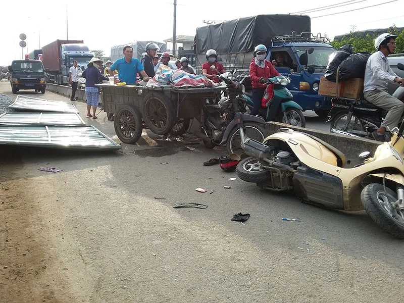 Sự cố khiến một người phụ nữ khoảng 45 tuổi, điều khiển xe máy biển số TP.HCM cùng một người đàn ông điều khiển xe lôi bị đè trúng; hai nạn nhân ngã vào dải phân cách. Người đàn ông bị đa chấn thương, người phụ nữ bị gãy chân, xây xát được đưa đi cấp cứu.