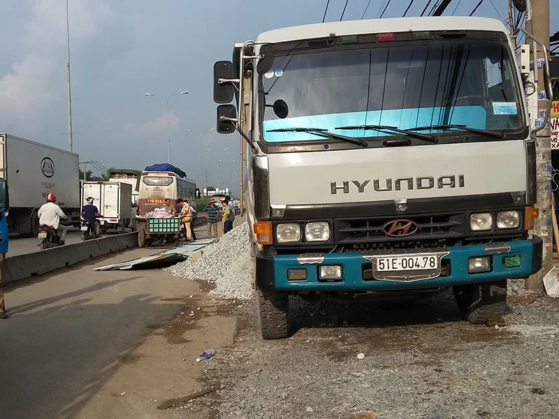 Chiều ngày 29-5, xe ben biển số TP.HCM đang đổ đá phục vụ công trình thi công lắp đặt hệ thống cống thoát nước trên Quốc lộ 1A (đoạn qua khu phố 5, phường An Phú, quận 12, TP.HCM) thì xảy ra tai nạn.